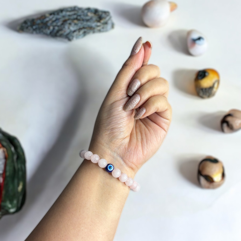 Rose Quartz With 1 Evil Eye Bead Bracelet